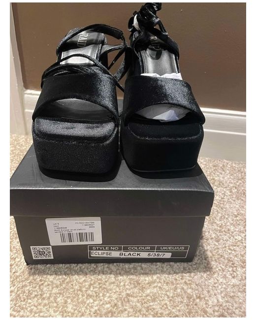 Step out in style with these RAID Women's Eclipse Velvet Platform Sandals. These stunning black shoes feature a square toe, tie closure and a high block heel measuring between 7.6-10cm. The velvet upper material gives these shoes a luxurious feel, perfect for any formal occasion or party. Not only are these shoes stylish, but they are also comfortable with a 2 inch platform height and synthetic outsole material. These sandals are perfect for any season, whether it's autumn, summer or spring. Don't miss out on the opportunity to add these beautiful shoes to your collection.