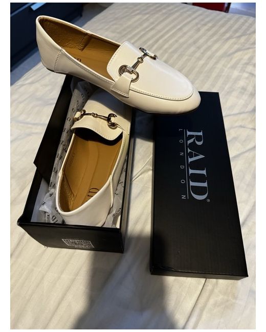 These Raid loafers in cream are a must-have for any stylish woman. Crafted from high-quality leather, these flats are both durable and comfortable. Perfect for everyday wear, they feature a versatile design that can easily match any outfit. With a UK shoe size of 5, these loafers are the ideal fit for most women. Their classic style and cream colour make them a great addition to any wardrobe. Whether you're dressing up for a night out or simply running errands, these Raid loafers are the perfect choice.