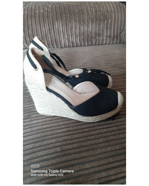 These black Raid sandals are the perfect addition to any woman's shoe collection. With a comfortable almond toe shape and a high wedge heel, these shoes are both stylish and practical. The cotton upper material and fabric outsole provide breathability and durability, making them perfect for everyday wear. These sandals come in a UK shoe size 5 and EU shoe size 38, and are suitable for women. They are not customised and are not vintage. The insole material is also fabric, providing additional comfort. Don't miss out on the chance to own these stylish and versatile shoes.