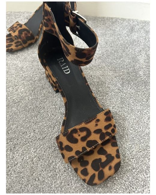 Step out in style with these Raid leopard print small heels in size 4. Perfect for any occasion, these heels will add a touch of glamour to any outfit. Made by the trusted brand Raid, these heels are sure to be a comfortable fit and lasting addition to your shoe collection. Designed for women, these heels are a must-have for any fashionista. The sleek and stylish design will make you stand out from the crowd. Whether you're dressing up for a special event or adding a touch of elegance to your everyday look, these Raid leopard print small heels are the perfect choice.