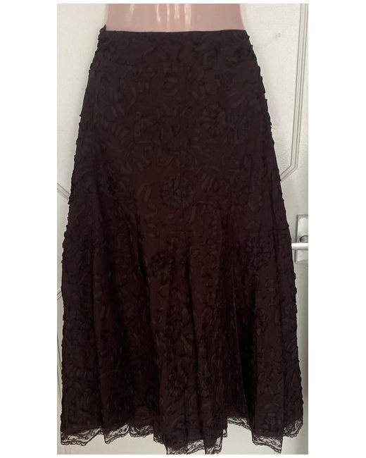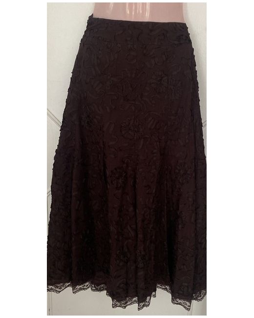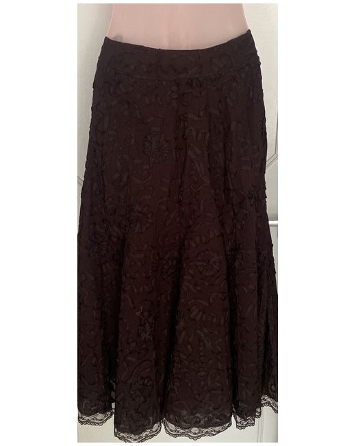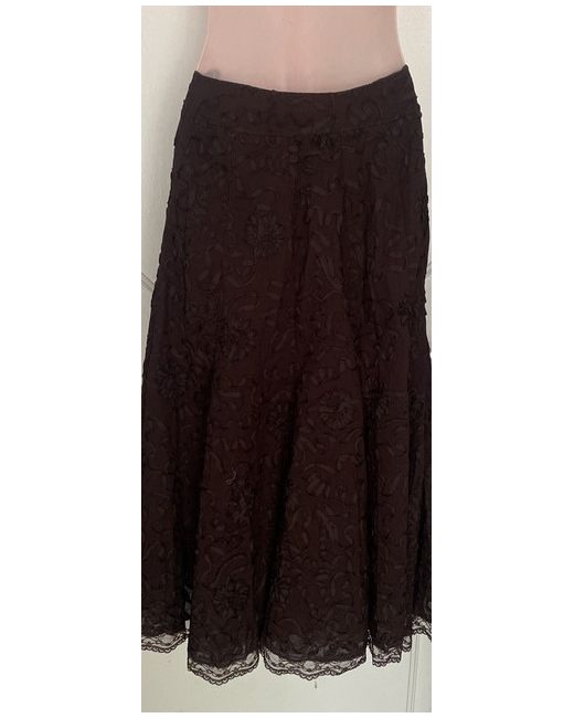 Introducing a stunning SIMON JEFFREY Collection Ribbon Maxi Skirt with a beautiful lace hem trim. This lovely skirt is made of high-quality cotton material in a gorgeous brown colour. The skirt features a zip closure and is perfect for women size 10. Waist to hem-33.5” The skirt is designed with lovely accents of ribbon and is a great addition to your wardrobe. It is perfect for all seasons, including autumn, winter, summer, and spring. The skirt is lined and is of regular size type. This maxi skirt is an excellent choice if you're looking for a beautiful and stylish addition to your wardrobe.