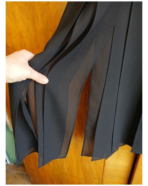 2 layers of polyester crepe chiffon with multiple slits creating a floaty fringed effect.