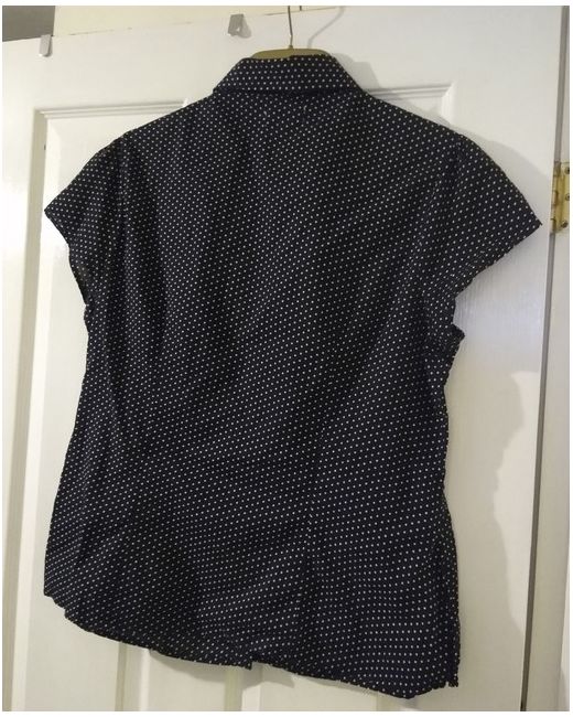 Flowy size 16. Bust is 42-44 inches, waist is 40 inches. Has small slits at the sides (shown in photos).