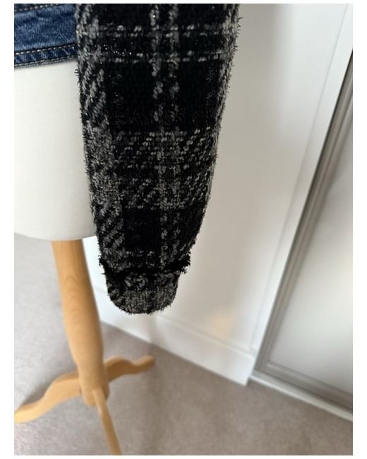2 press stud fastening with 2 stunning buttons at the top. The other buttons are normal buttons with button holes. The jacket is very diffident. The jacket features long sleeves with button cuffs, a collared neckline, and a regular fit.