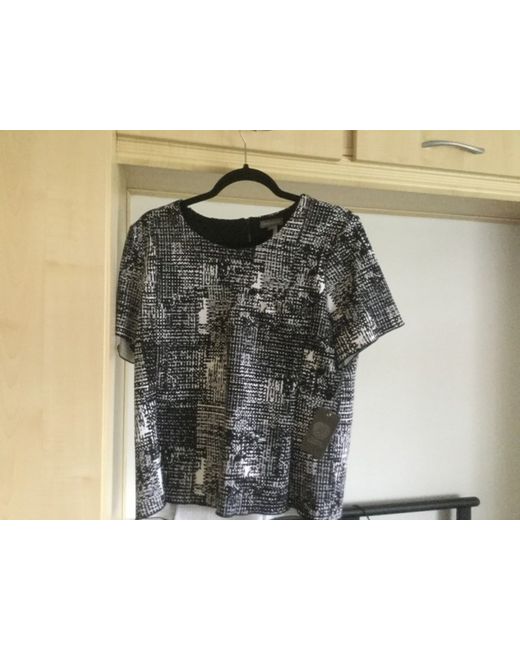 Vince camuto rich black & white top zip at the back short sleeve size L.