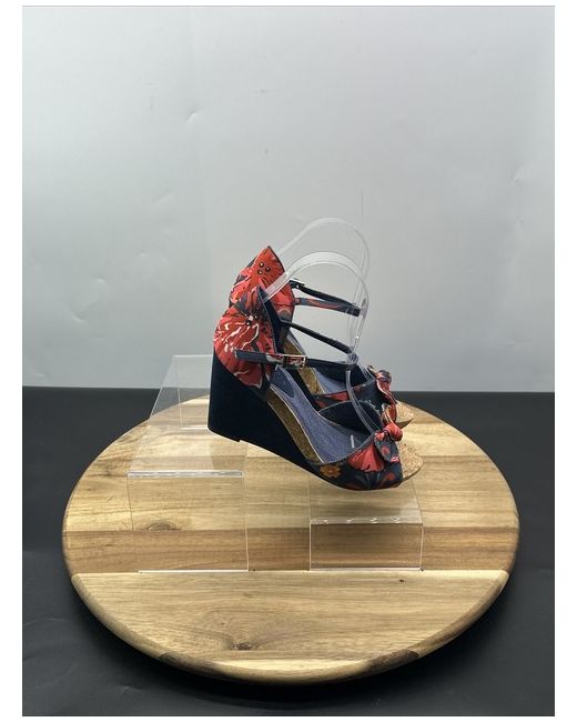 Women's Floral Sandals 5 Wedge Multicoloured Fabric Buckle Shoes