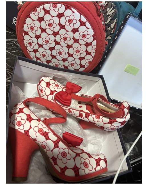 BNIB Clara Navy Geometric Mid Heel Shoes 7 With Matching Bag