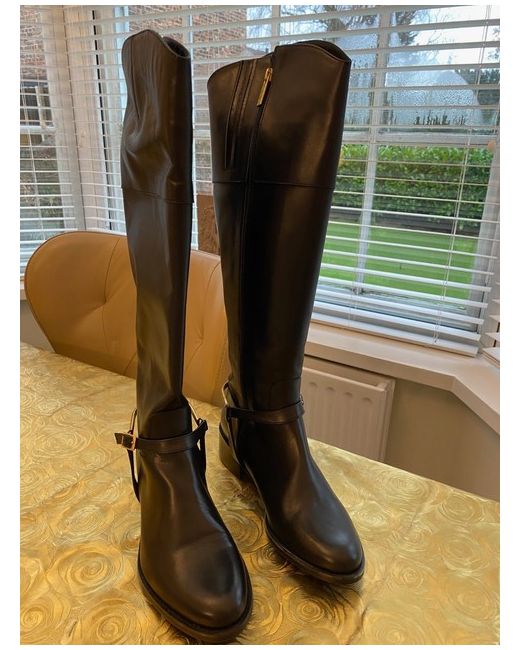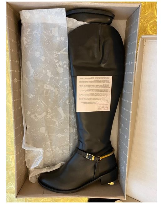 These are brand new, unused, unworn and undamaged leather tall leather boots from DUO. Bought a while back and never worn as too small. Originally well over £200. Black leather 14 inch calf