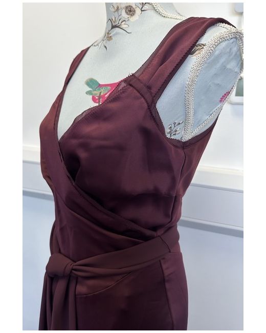 NEW Amanda Wakely Elements Burgundy Wine Satin Faux Wrap Dress 10 Occasion