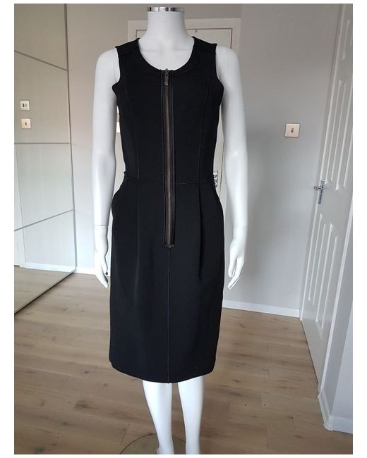 Women's Black Amanda Wakeley Medium Size 38 Silk Lined Full Front Zip Dress.