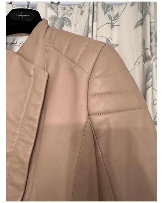 The Amanda Wakeley leather jacket is a stylish and versatile addition to any woman's wardrobe. Made from high-quality leather with a polyester lining, this short-length biker-style jacket features a zip closure and zipped pockets for added convenience.