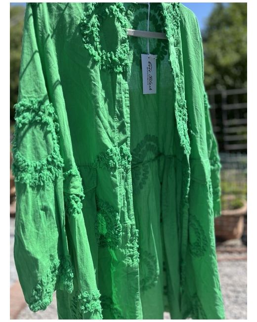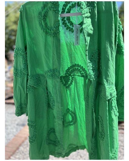 The self-patterning design adds a touch of uniqueness to the classic open edge-to-edge jacket style. The long sleeves and pure green colour make it a standout piece for any occasion.