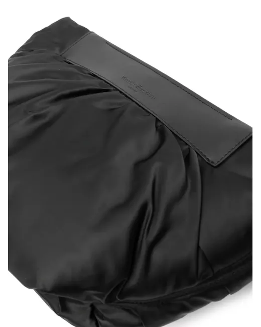 black recycled polyester recycled nylon faux-leather trim logo print to the front pleat detailing concealed top-zip fastening detachable braided shoulder strap contrast lining