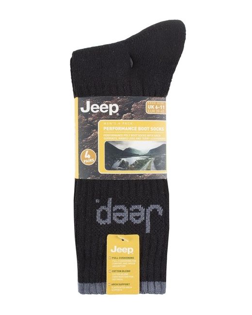 Jeep socks are crafted and designed for the great outdoors. Let your feet breathe in these soft terry cushioned poly cotton blend boot socks. Whether you're heading out for a long trek or a short hike, these socks have a elasticated arch support system that holds snug to your skin.