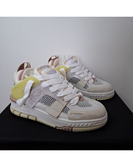 🌟 axel arigato area patchwork sneakers - size 39 EU/UK 6 - *brand new in box pristine condition, the left shoe has the tiniest orange mark on the back*, most likely manufacturing flaw - paneled leather - honeycomb mesh uppers - frayed trims and raw edges