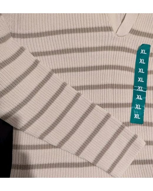 Costco ladies' jumper - Weatherproof Vintage Collared neckline with a classic look Long sleeved Size XL Cream knit jumper with grey stripes Pullover jumper is both soft and durable 100% Cotton