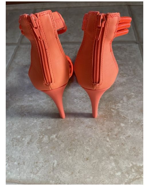These Call It Spring orange heels are a size 7 with a strappy design, perfect for a party or cocktail occasion. Made of synthetic material, they have a standard shoe width. The vibrant colour and stylish look make them a great addition to any woman's shoe collection.