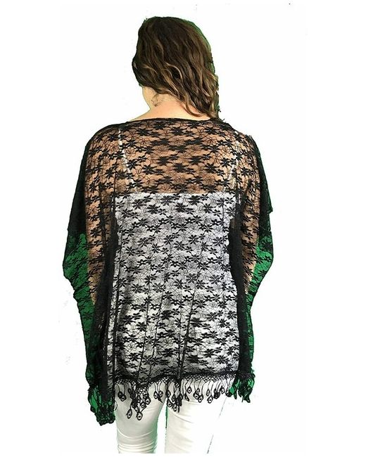 © Pamper Yourself Now Ltd. Black lace wrap 100% polyester. 100% Polyester. Wash at 30 degrees. Our model is UK size 14 and 6ft.