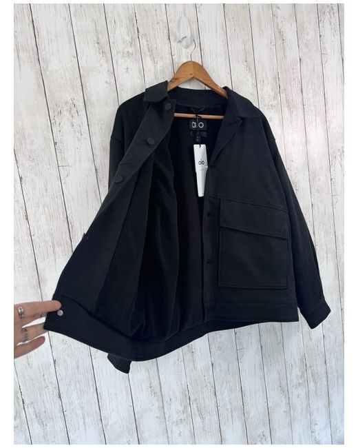 Item info from the ALO website. Made from a softly structured cotton blend, the One Up Jacket has a cool, utility-style look. It’s baggy and boxy in the best way (size down if you prefer a closer fit) with a point collar, matte buttons and oversized flap pockets.