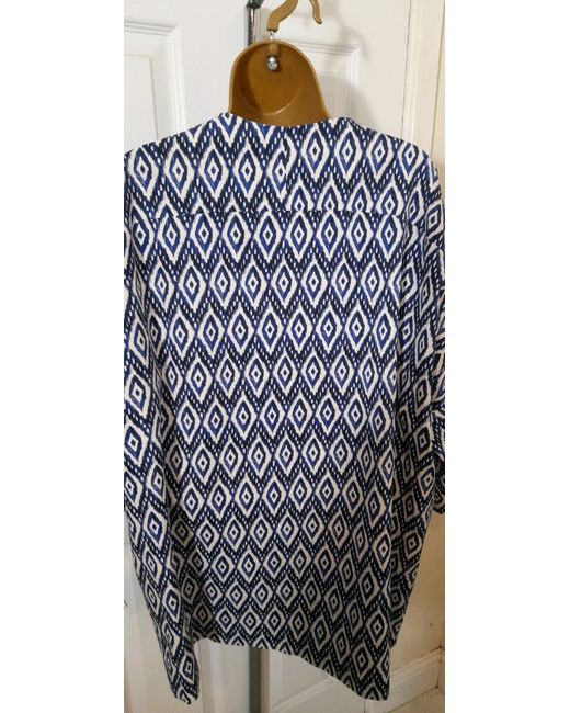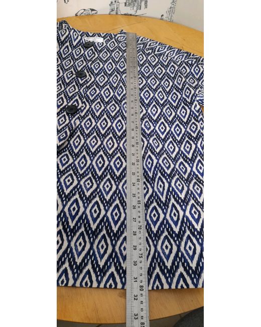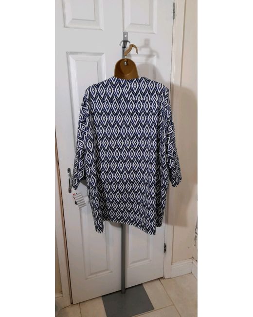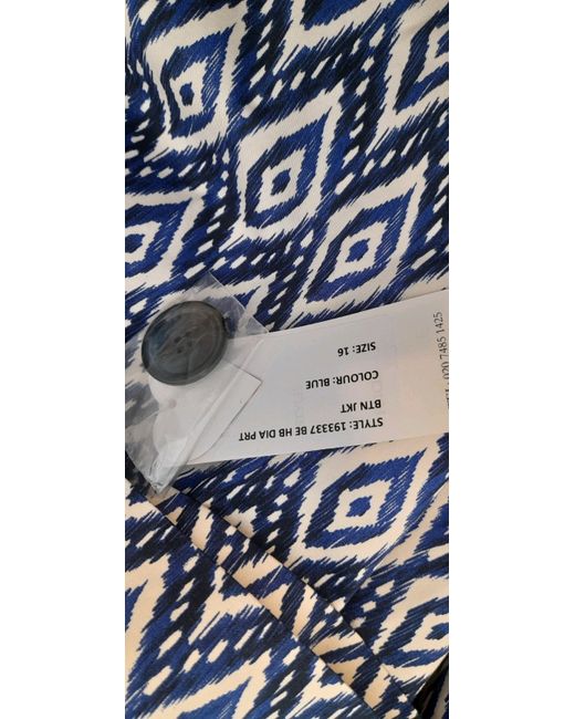 Women's Blue Diamond Print Collarless Jacket Eye-catching 16 New