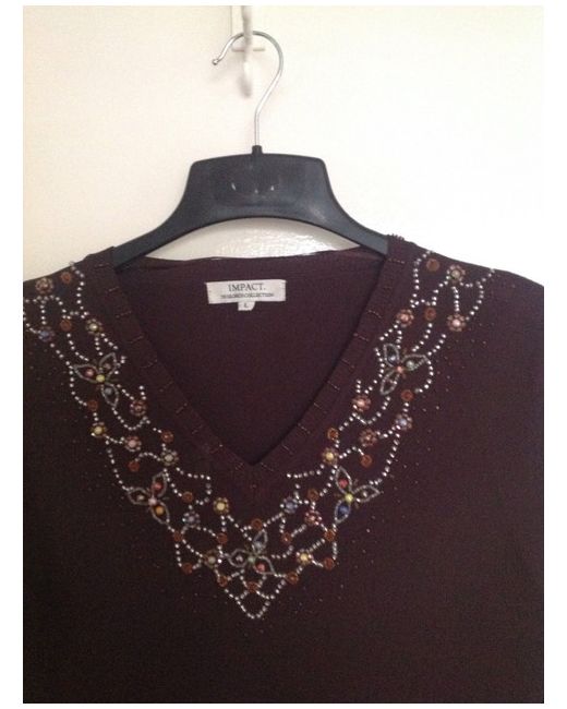 Impact Design Collection. Jumper Top with Multicolour beaded neck. 72% Rayon 28% Nylon Size L (Please see measurements below for your assuranceof fit. ) Bust pit to pit - approx 18" unstretched Length shoulder to hem - approx 25" Sleeve Shoulder to cuff - approx 24" New without tags. Also available in black. Thanks for looking :-) #17