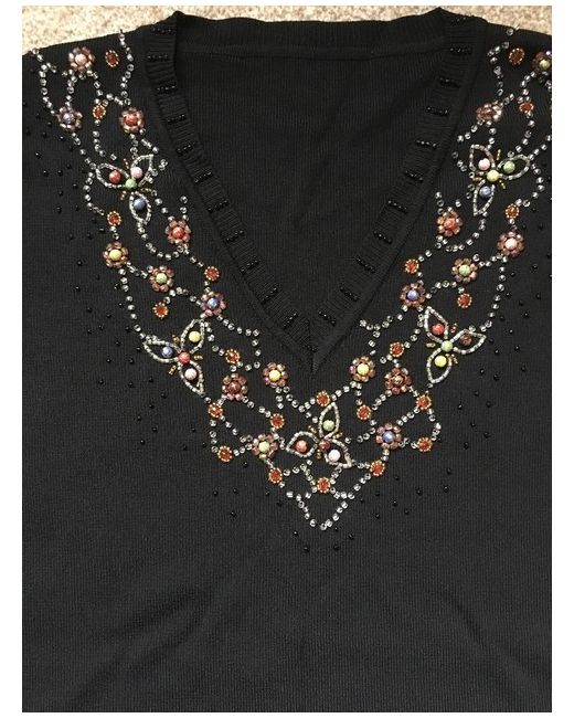 Impact Design Collection. Black Jumper Top with Multicolour beaded neck. Beige 72% Rayon 28% Nylon Size M Bust pit to pit - approx 17" unstretched Length shoulder to hem - approx 24" Sleeve Shoulder to cuff - approx 24" New without tags. Also available in brown. Thanks for looking :-) #18