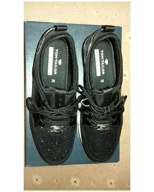 New Tom Tailor Black Laced Trainers size 38 with animal print patent, glitter and silver accents. Gorgeous detail with a stretchy top so you may not have to open the laces. Extremely comfortable Memory Effect insole.