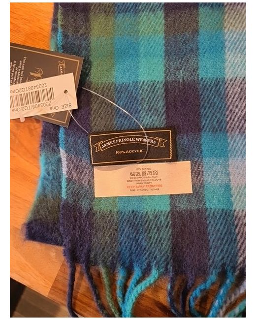 NEW James Weavers 100 Wool Tartan Plaid Fringed Blue Scarf Unisex