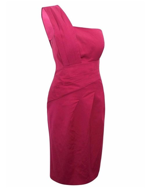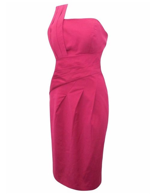 Alexon raspberry shift dress size 10. Pleated features waist and one shoulder. Concealed side zip. Back vent. This dress is nipped in at the waist for a good shape which enhances your figure.