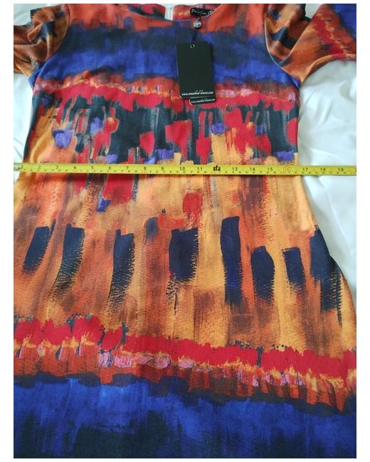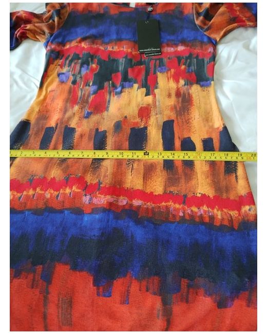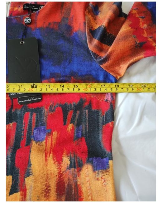 Smashed Lemon Dress With 3/4Sleeves & Back Zip Size 10/12. size 14 on label but I think more a size 10/12 please see measurements in photos. approx. pit to pit 36" length 36".