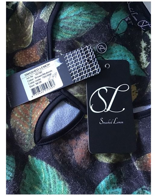 This is a Smashed Lemon warm top for women in size 12. It features long sleeves, a round neck, and a pull-on style. Made of acrylic/polyester/elastane fabric in a brown and green mix colour. The top is machine washable and has a regular fit, suitable for casual occasions.