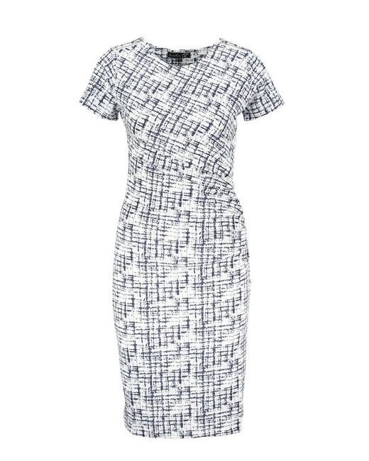 Presents tailored, fitted design with ruched left side. Smashed London. has a white colour with contrasting navy abstract sketches print all over. comfortable, stretch for better fit, opaque good quality fabric.