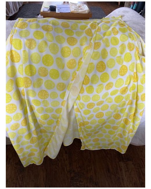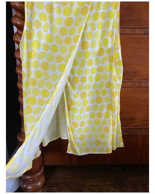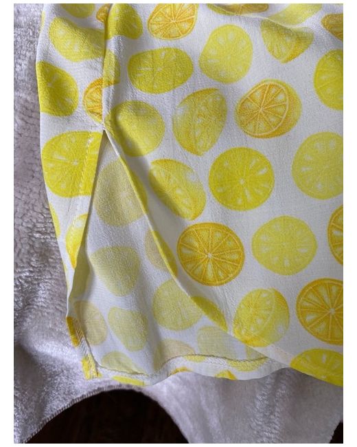 Unworn Sleeveless Lemon & Orange Patterned Top (Size: 20) Feature curved slit to both bottom side seams. Feature full length wrap over open slit to the back. New. Unworn. Immaculate condition. Size 20. Armhole to armhole measures 26 ins. Length 28 ins. Price £10 plus £3.50 pp.