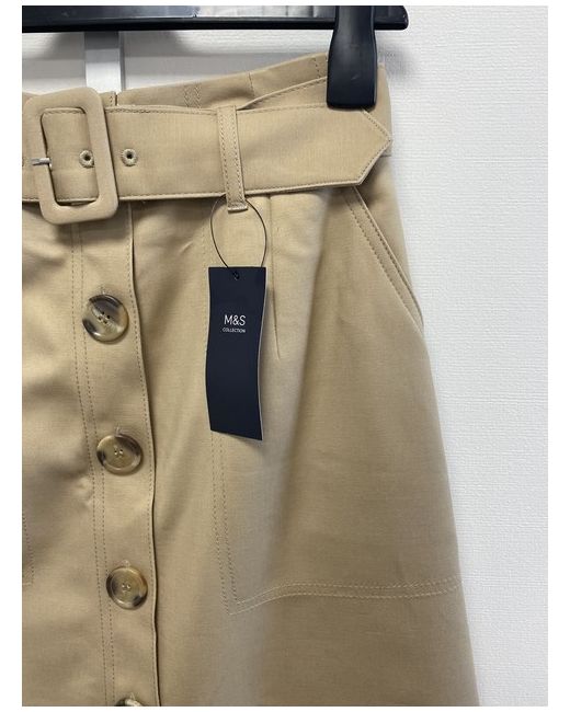 Marks & Spencer Collection. New coffee coloured A-line button through skirt. Two large diagonal opening front pockets. Machine washable. Fabric care. Length: 29". Waist: 28".