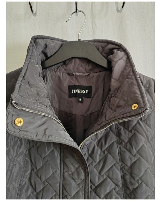 New stylish quilted jacket with zip and buttons, pockets and inner pocket. Length 89 cm/35 in. Under arms width 120 cm/47 in
