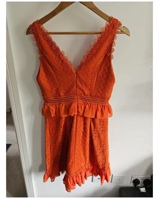 Three Floor designer orange lace dress never been worn uk size 10. Lots of lace detailing into this dress. Fully lined