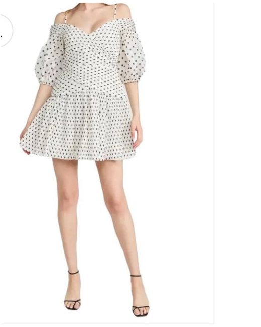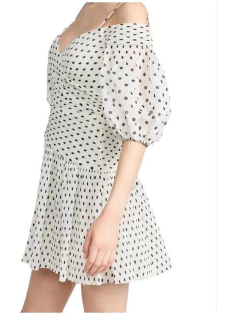Non-stretchy pleated fabric. 100% Polyester. Fully lined. Short off-the-shoulder sleeves. p> Concealed rear zip closure. p> Dry clean only.