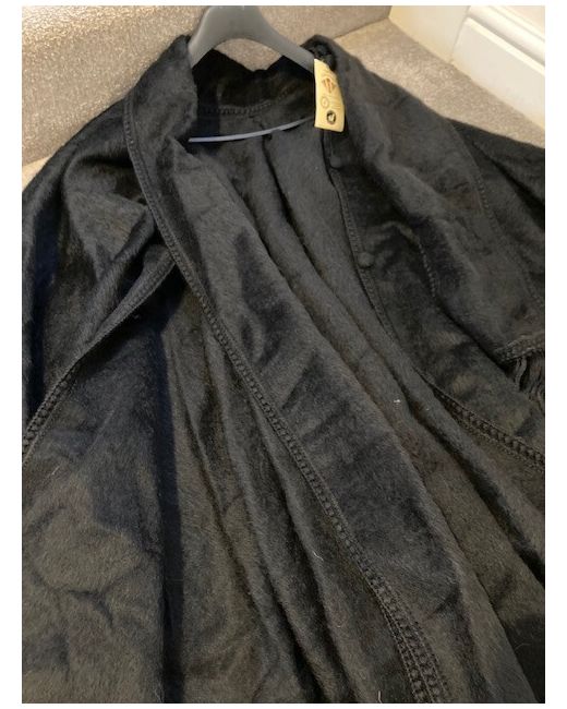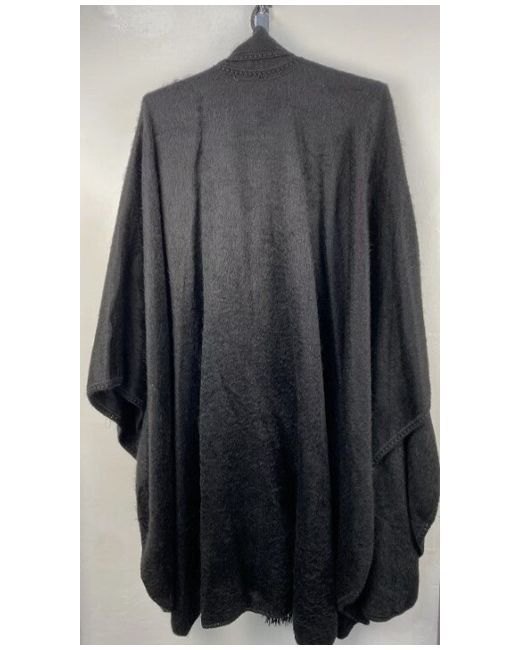 Alpaca Camargo. Ladies Traditional outer wear - One Size. Full shaped item with button and loop at neck. Buttons down front for fastening. Attachable long fringed scarf falls down either side.