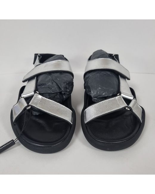 Women's Silver Flat Strap Sandal 37 EU Damaged Box