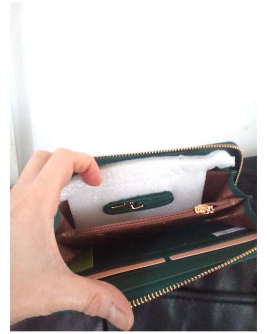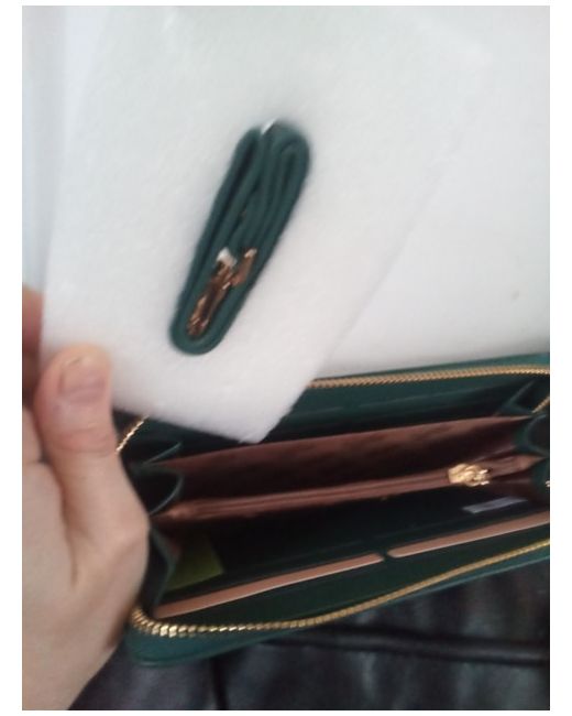 weichen ladies long wallet very sleek and smart in a lovely smart green not a horrible green. multi compartments for organization with strap useful for money and credit cards thanks for looking.