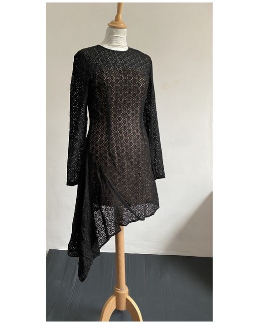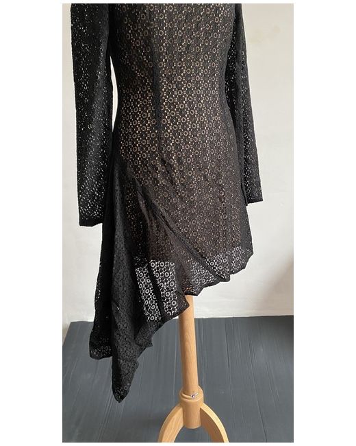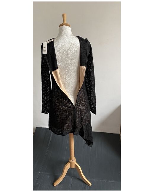 Stunning brand new asymmetrical mini dress. Black lace fabric and beige lining. Long sleeves and zip close.