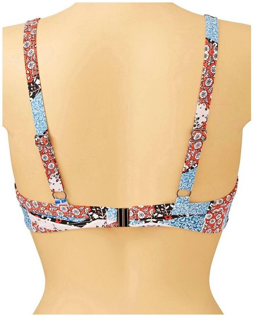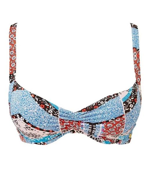 SUNSEEKER DECORATIVE DAZE BIKINI TOP. UNDERWIRED PADDED CUP (REMOVABLE). RED & BLUE BOHO PRINT WITH GATHERED FRONT DETAIL. PLUS SIZE 22 F CUP. You can buy a quicker service from the drop down at checkout.