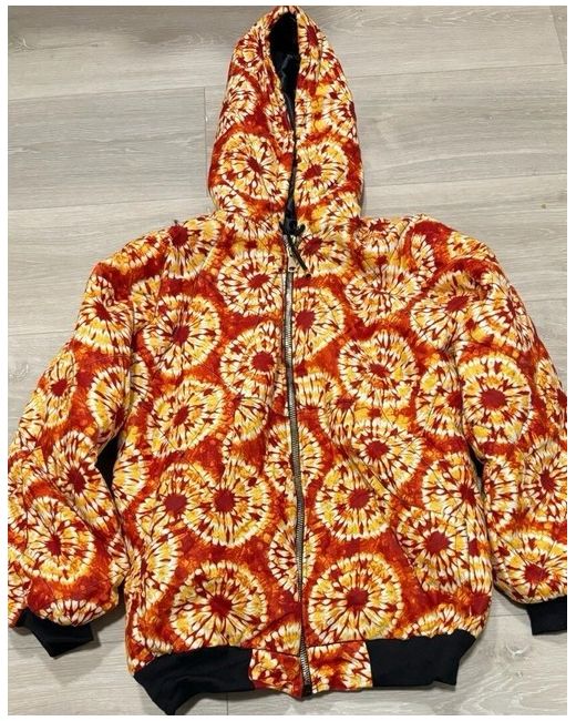This new Ankara Bomber Jacket features a vibrant multicoloured floral pattern on 100% wool outer shell. The jacket has a zip closure, long sleeves, and is fully lined with fleece. Made in the United Kingdom, this jacket can be personalised with Ankara and flower materials.