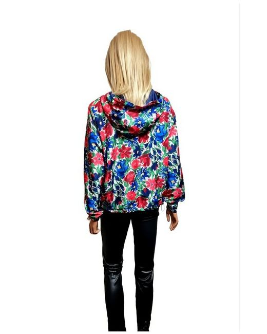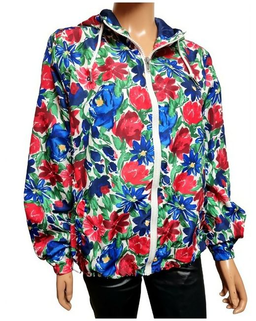 BEAUTIFUL MULTICOLOUR FLORAL PRINT, LIGHTWEIGHT, LINED, FULL ZIP, SIDE POCKETS, SHORT, DRAWSTRING HEM, HOODED, WINDPROOF, BOMBER JACKET FROM CARIBBEAN JOE. I will try to help in any situation. ARMPIT TO ARMPIT ACROSS THE BACK = 24".