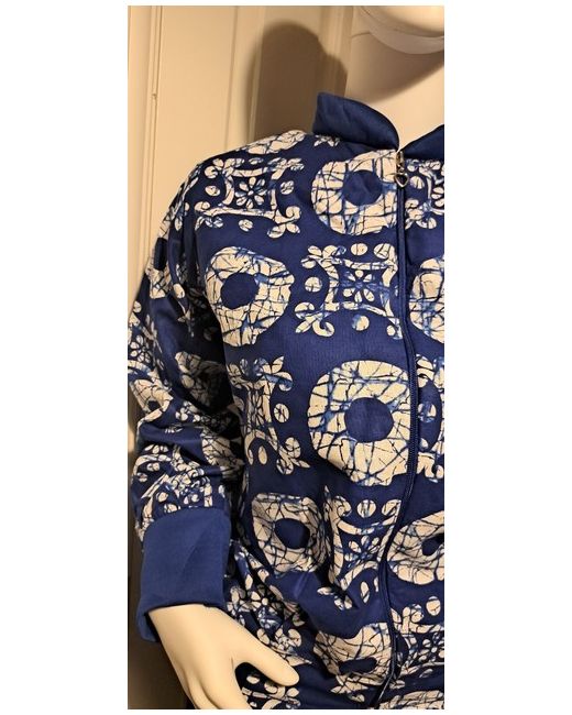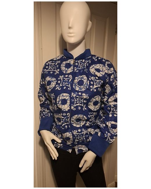 This stylish Bomber Jacket is a must-have for any fashion-forward woman. With a vibrant blue and white Ankara fabric, this jacket is perfect for adding a pop of colour to any outfit. The jacket features a full zip and lightweight design, making it perfect for layering in any season. The jacket is available in size M and XXL, making it a versatile addition to any wardrobe. The cotton outer shell material is breathable and comfortable, ensuring that you stay comfortable all day long. This jacket is perfect for any occasion, from a casual day out to a more formal event.