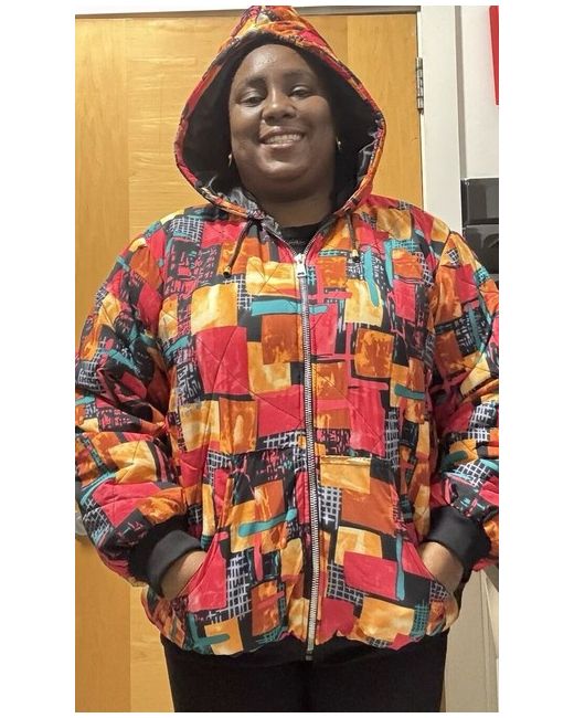 This Ankara Bomber Jacket is a new vintage piece crafted from cotton in a multicoloured design. It features long sleeves, a zip closure, and a regular fit. The jacket is unisex in different size and has a stylish bomber jacket style with the model name Triple T. Made by the brand Bomber, this jacket is perfect for casual occasions and was manufactured in the United Kingdom.