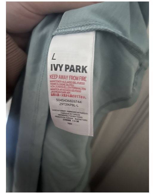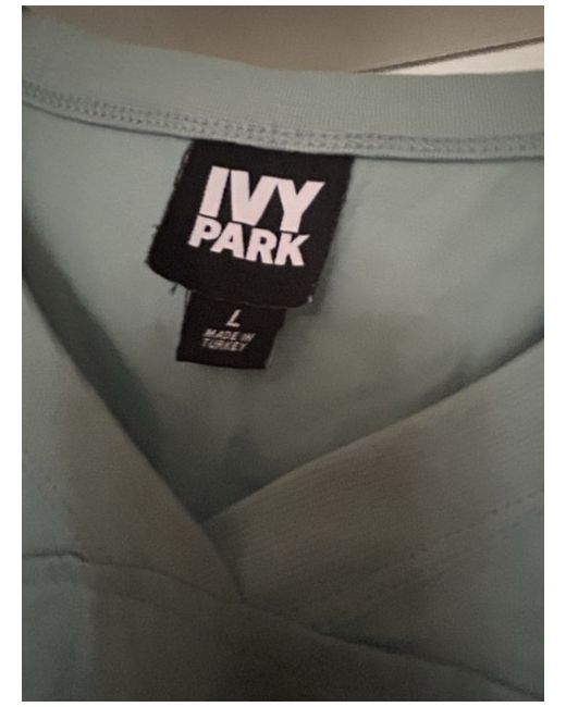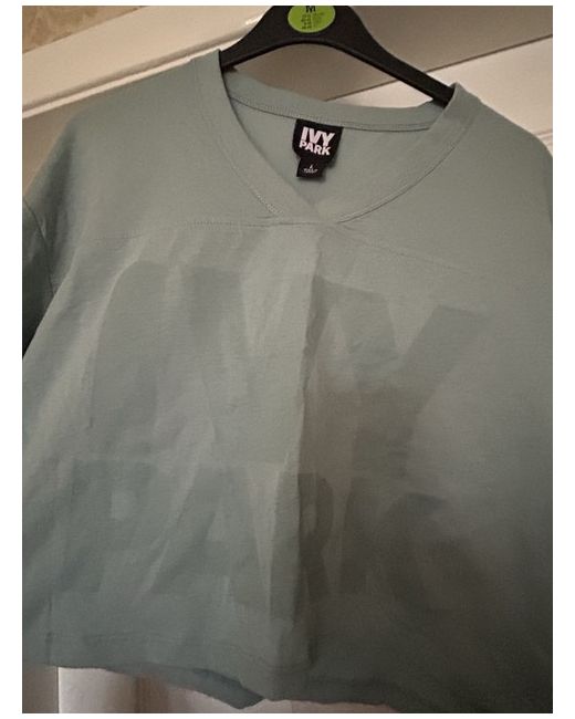 This IVY PARK crop top is in a vibrant teal colour with a short sleeve design. It is a size L, suitable for women. The top features a cropped style, perfect for a trendy and casual look.