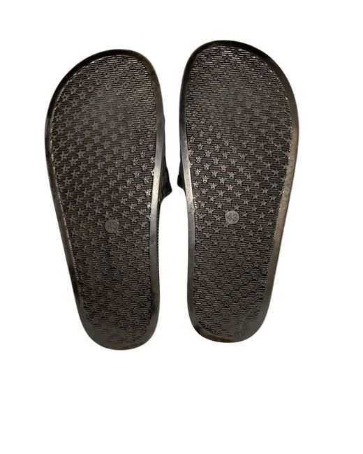 Step into comfort with these sleek black Supreme flip-flops, perfect for those seeking both style and practicality. The unisex design makes them a versatile addition to any casual wardrobe, while the durable rubber upper material ensures they're built to last. With a UK shoe size of 43 EU, these slippers are ideal for adult feet, offering ample space for a comfortable fit. Whether you're heading to the beach or just lounging at home, these Supreme slides are the epitome of laid-back luxury.