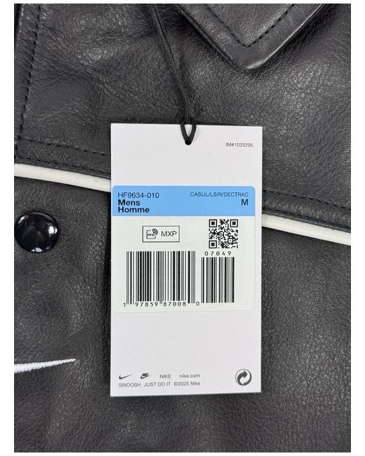x Nike Logo Embroidered Button Down Leather Jacket M