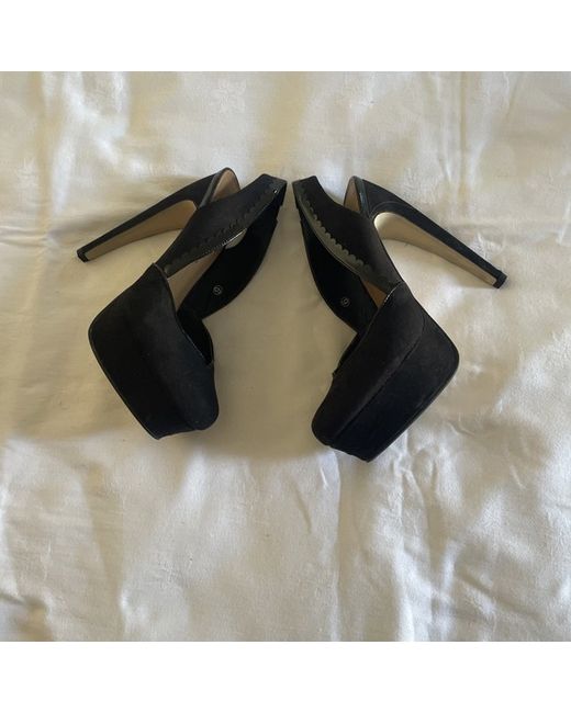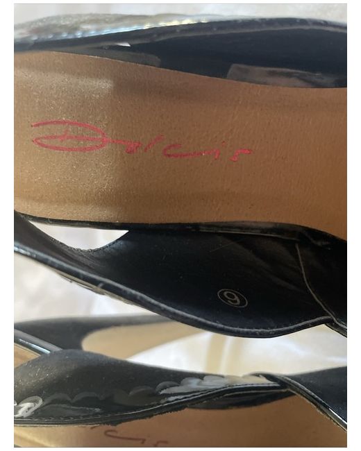 Dolcis Heels are a stunning pair of black patent fringe heels, perfect for a party or cocktail occasion. With a very high stiletto heel and a closed toe design, these slingback heels are stylish and elegant. Made from a blend of textile and other materials, these size 6 heels are customised to fit women who want to make a statement at any event